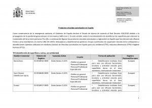 Productos virucidas autorizados en España. Como consecuencia de la emergencia sanitaria, el Gobierno de España declaró el Estado de alarma de acuerdo al Real Decreto 436/2020 debido a la propagación de la pandemia generada por el coronavirus SARS-CoV-2. E